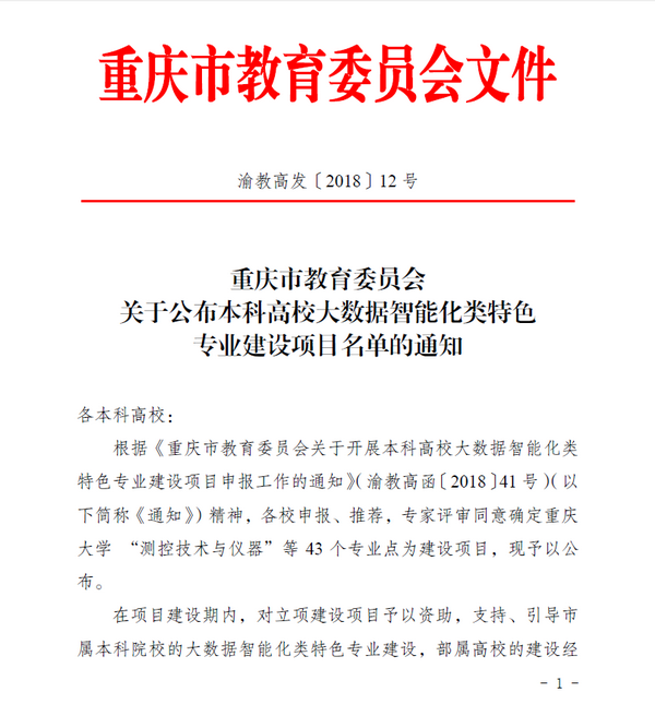喜讯:我院电子信息科学与技术专业获批重庆市大数据智能化类特色专业建设项目立项