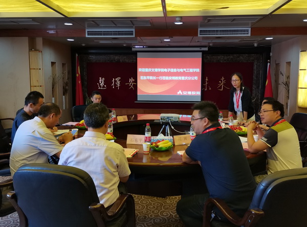为进一步提高我院微电子科学与工程的专业建设水平,9月27日,我院执行院长石东平、副院长杨守良及电子工程系部分教师赴安博教育集团重庆分公司调研交流。安博教育大学事业部重庆分公司周寅总经理、北京博达微科技有限公司产品总监封国强等人热情接待了石东平一行。
