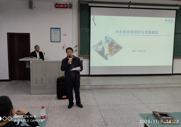 张正元高工以《光电微系统现状与发展建议》为题,为学院教师和新生做了精彩的报告。张正元教授的报告紧跟微电子前沿研究领域——光电微系统,综述了该领域国内外最新发展现状、声光电集团目前在该领域的研究进展,并对该领域未来发展前景做出了预测和展望。整场报告内容精彩,信息丰富,资料新颖,师生们聆听后受益颇丰。