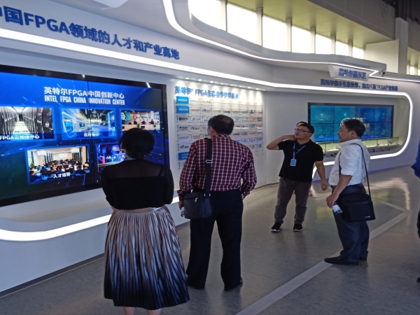 在英特尔FPGA中国创新中心海云捷讯科技有限公司,培训事业部总经理张辉介绍了创新中心硬件及软件平台基本情况。目前中心的主要目标是通过举办峰会和创新大赛、人才培养、高校合作等方式推广FPGA技术,希望与我院开展企业定制化培训,为创新中心入驻的企业量身定制人才。座谈交流后,考察组一行参观了创新中心关于FPGA技术的应用成果展厅。
