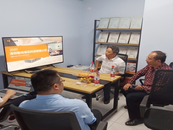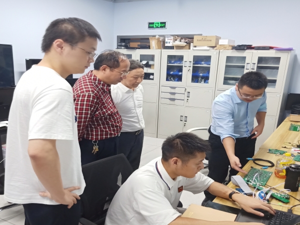 在智尚视讯科技有限公司研发部,古昌文总经理向考察组介绍了该部门的研发产品和研发团队基本情况,双方就人才培养和共建实习基地事宜进行了深入商讨。