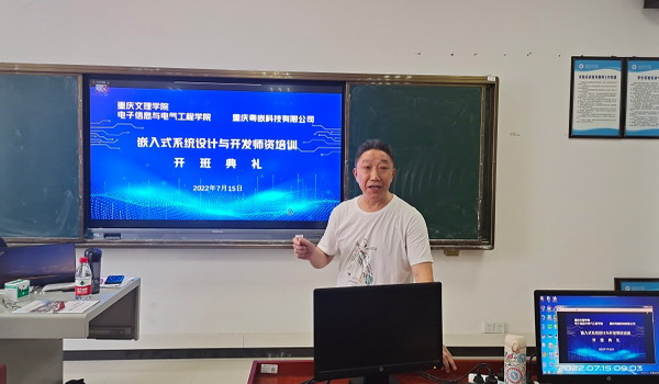 7月15日,我院与重庆粤嵌科技有限公司联合开展的“嵌入式系统设计与开发师资培训”在格术楼B403机房正式开班。学院院长石东平、粤嵌公司派出的培训工程师李林峰、我院十余名参训师生参加了开班仪式。