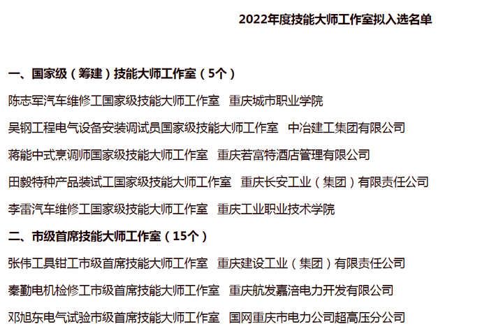 近期,重庆市人力资源和社会保障局办公室公布了2022年度技能大师工作室拟入选名单,我院欧汉文教授领衔申报的大师工作室,入选电子设备装接工市级首席技能大师工作室,这是继2019年获批欧汉文电子设备装接工市级技能大师工作室后的一次重大升级,标志着我校专家工作取得新突破。