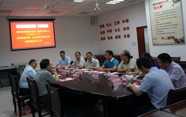 兰刚对株洲宏达电子高层领导的到来表示热情欢迎。他向客人介绍了我校的办学历史与发展概况,并重点介绍了我校在新材料、新药、新型储能器件等科研及新工科建设方面做出的努力和取得的成效,希望此次的校企合作能够做到互惠互赢。